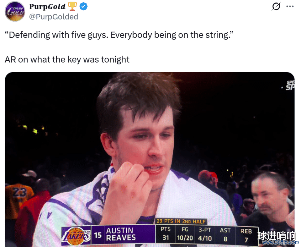 湖人另外一名核心里夫斯谈到湖人近期防守变化时也持有相同观点:“5个人一起防守,所有人都像串在一根绳上一样联动。”