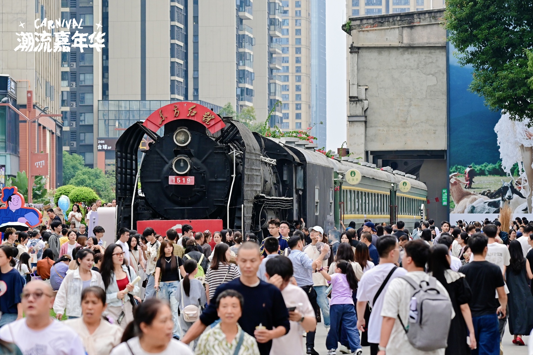 这个假期里,成都东郊记忆的东市火车头市集,每天12点至21点就会“变身”回到工厂时代,带游客“穿越时空”:从市集入口处2米复古巨型电视装置、到每个摊主和摊位的集体变装,浓浓的时代感让市民和游客一秒回到上世纪50年代,在沉浸式体验老工业风同时带回特别而有趣的文创产品、畅享美食。