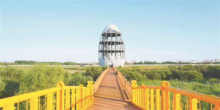 三江口国家湿地公园里的“巨蛋”观鸟台。本报记者 刘心杨摄